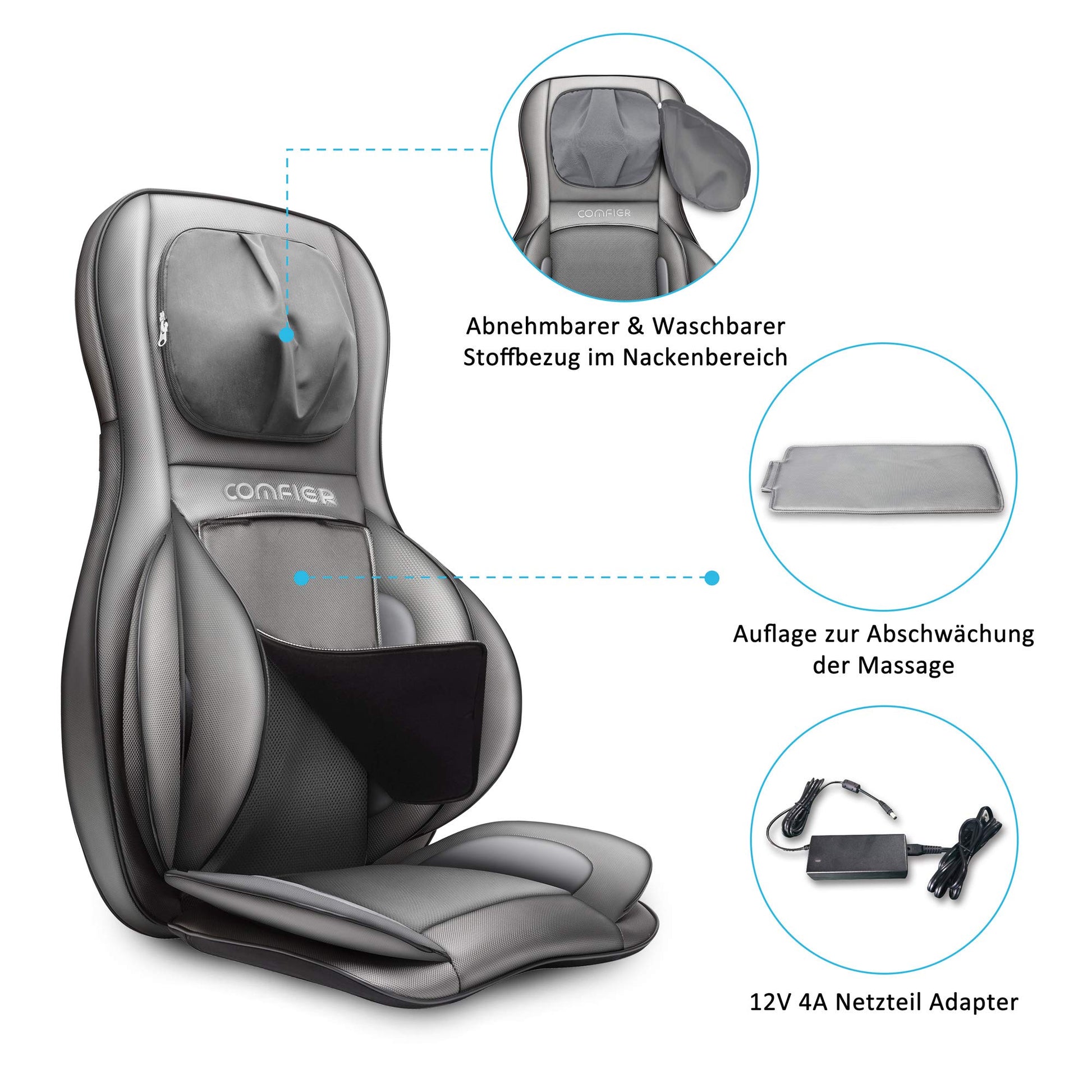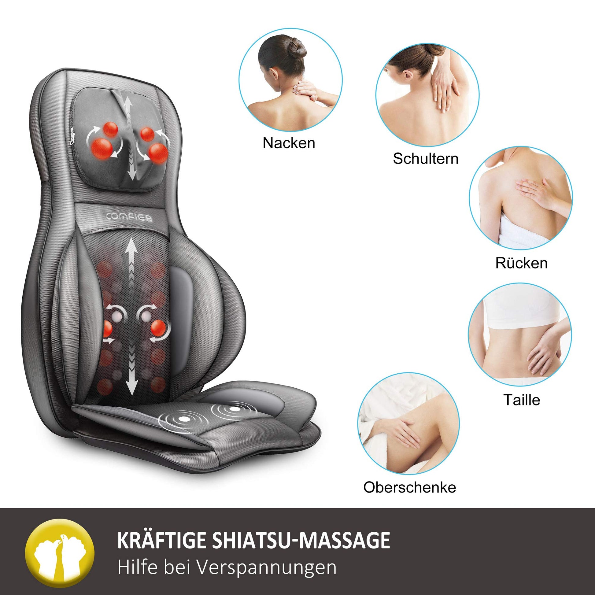 COMFIER Shiatsu Massagesitzauflage mit Wärme für Rücken, Nacken, Schultern & Oberschenkel