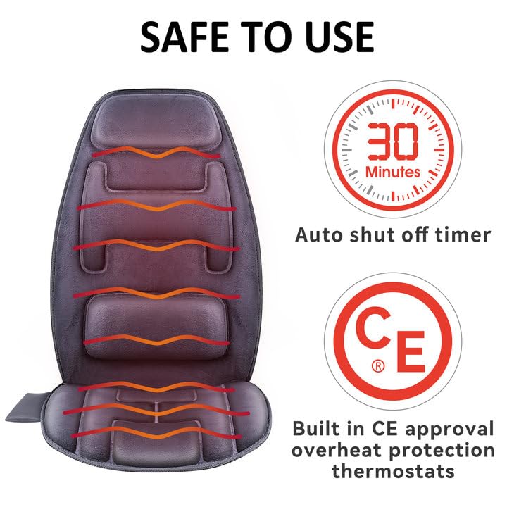 - 【Schnelles & Sicheres Aufheizung】 Die Massageauflage hat 2 Heizstufen für den gesamten Rücken- und Sitzbereich, bietet therapeutische Wärme für Rücken Hüften und Oberschenkel. Die Rückenheizung und die Sitzheizung können separat betrieben werden. Für ein schnelles Aufheizen verfügt er über ein Überhitzungsschutzsystem und eine 30-minütige Abschaltautomatik für einen sicheren Gebrauch.